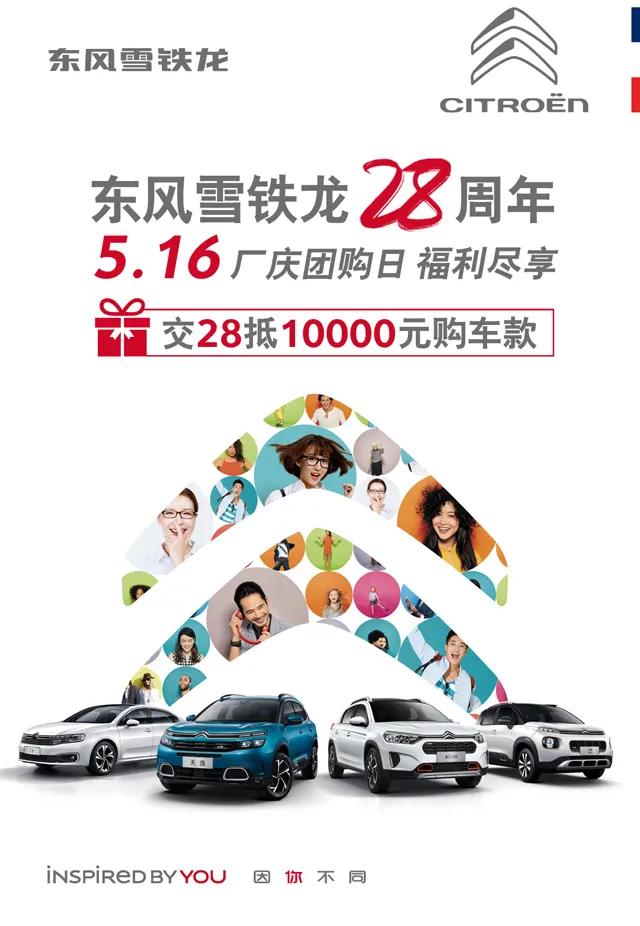 東風(fēng)雪鐵龍28周年, 5.16廠慶團(tuán)購(gòu)日 福利盡享! 發(fā)布時(shí)間:2020-05-13 15:53:22    點(diǎn)擊數(shù):928