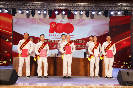 為慶祝中國(guó)共產(chǎn)黨建黨100周年, 6月26日上午,安陽(yáng)中聯(lián)黨委組織召開(kāi)慶祝建黨100周年“兩優(yōu)一先”表彰大會(huì)暨文藝匯演,安陽(yáng)中聯(lián)全體黨員、職工代表、海工廠退休黨員代表共計(jì)200余人參加會(huì)議。